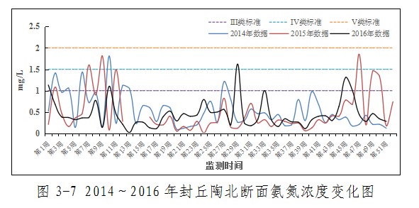 根据长垣县入境水在封丘王堤断面和封丘陶北断面显示入境水系水质稳定在Ⅱ类到Ⅴ类之间,其中封丘王堤断面Ⅳ类以下占47.4%,封丘陶北断面Ⅳ类以下占60.39%。出境检测断面检测在滑县孔村桥断面和濮阳渠村桥断面,其中滑县孔村桥断面上显示Ⅳ类以下水质占57.74%,濮阳渠村桥断面处于断流状态,水质类别为劣Ⅴ类。