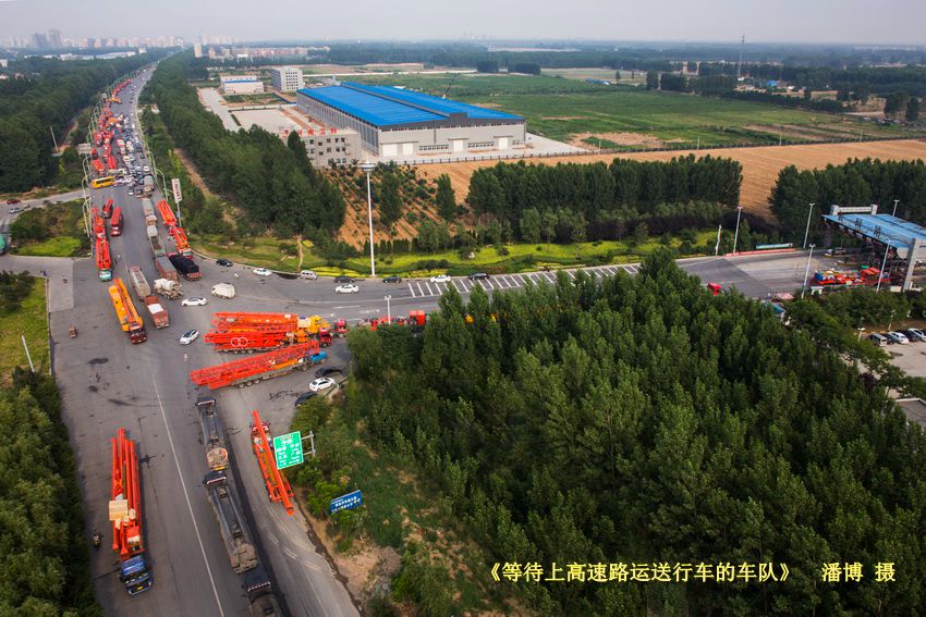 等待上高速路运送行车的车队