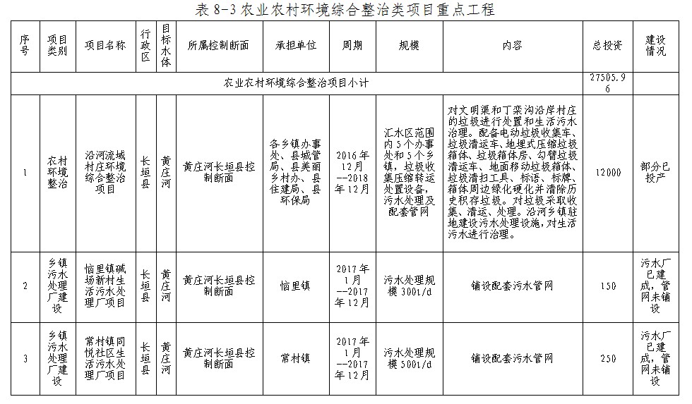 根据《水污染防治行动计划》,结合《长垣县2016年碧水工程实施方案》、《长垣县碧水工程行动计划》,确定重点工程。